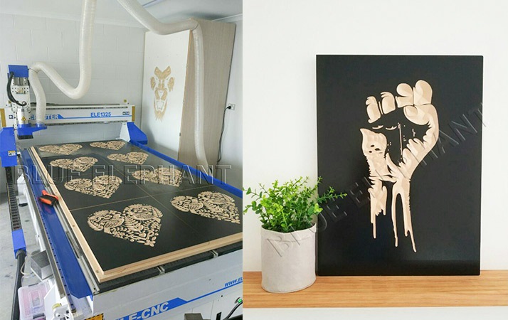 藍象數(shù)控1325數(shù)控開料機在客戶工廠現(xiàn)場加工樣品實拍,圖片樣式均有客戶自己設計;↓