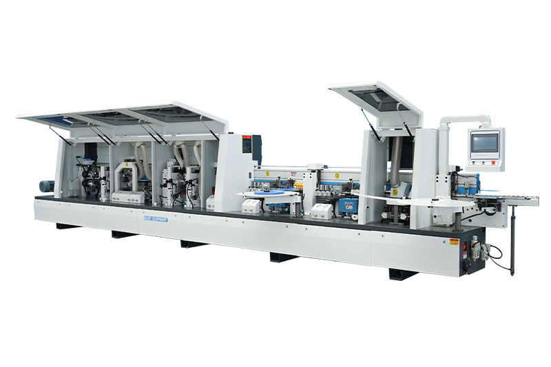 主要功能:預(yù)銑-涂膠貼邊1-六輪壓貼-烤燈1-涂膠貼邊2-六輪壓貼-烤燈2-前后齊頭-精修1-精修2-跟蹤修邊-氣動刮邊-平刮-氣動拋光1-氣動拋光2-屏幕一鍵控制前后清洗。