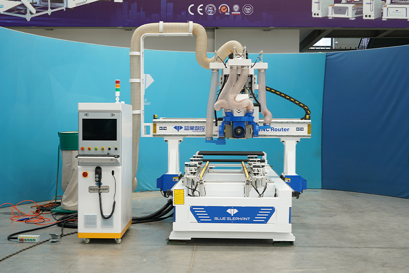 門鎖機(jī)由兩個(gè)垂直主軸、四個(gè)水平主軸(可自由切換角度)、可調(diào)夾具工作臺(tái)、輔助上下料裝置等部件組成,木門裝夾方便,多把刀自由切換功能強(qiáng)大。設(shè)備操作簡(jiǎn)單便捷,系統(tǒng)功能強(qiáng)大,含有健全的CAM軟件,輕松完成木門鎖孔、鎖槽、合頁(yè)面、油漆孔、滑道槽等工藝的加工。