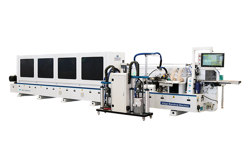 主要功能:分離→預銑→PUR膠鍋→皮帶壓輪→粗修→精修→刮邊1→刮邊2→齊頭→仿形跟蹤→平刮→清洗→拋光1→拋光2→拋光3。