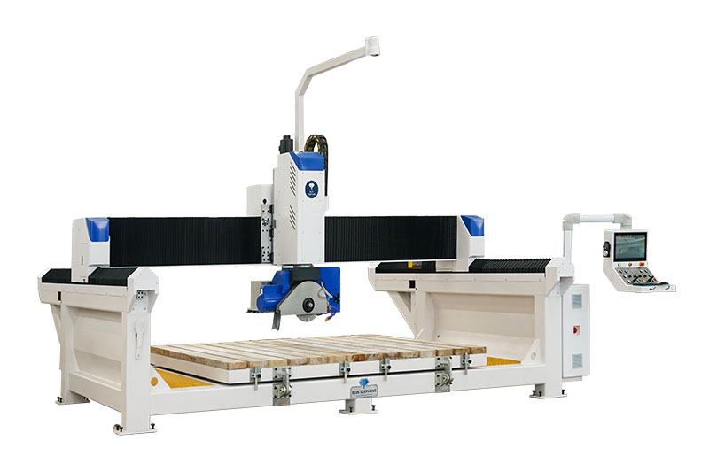 5+1 數(shù)控橋切鋸能夠以任何所需的角度和形狀對(duì)花崗巖、大理石、人造石、板巖和各種其他石材進(jìn)行切割和雕刻。本機(jī)采用的藍(lán)象數(shù)控系統(tǒng)。